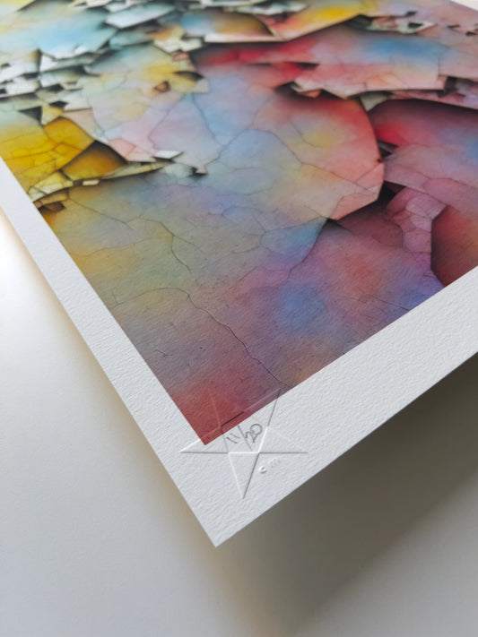 Classified Matter Editions presents Liminal Worlds by Damir Polic, a striking new series that features 12 limited edition prints based on minute details observed in his abstract paintings. Each piece is rooted in a detailed examination of textures, hues and brushmarks, capturing the dynamic behaviour of paint as it interacts with various substrates, chemicals and atmospheric conditions. Through the use of advanced digital tools, these photographed micro-elements are transformed and upscaled into bold and colourful compositions that evoke geological and urban landscapes.